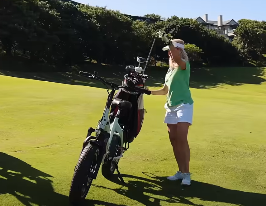 The Golf Bike is designed for ease of use. It features a stable stand for parking and an integrated golf bag holder that makes it easy to access clubs. Its design considers the golfer’s need for quick transitions between shots.